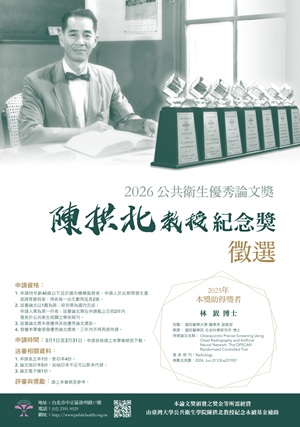 2026年 第32屆「公共衛生優秀論文獎──陳拱北教授紀念獎」徵選開跑,敬請踴躍參加!