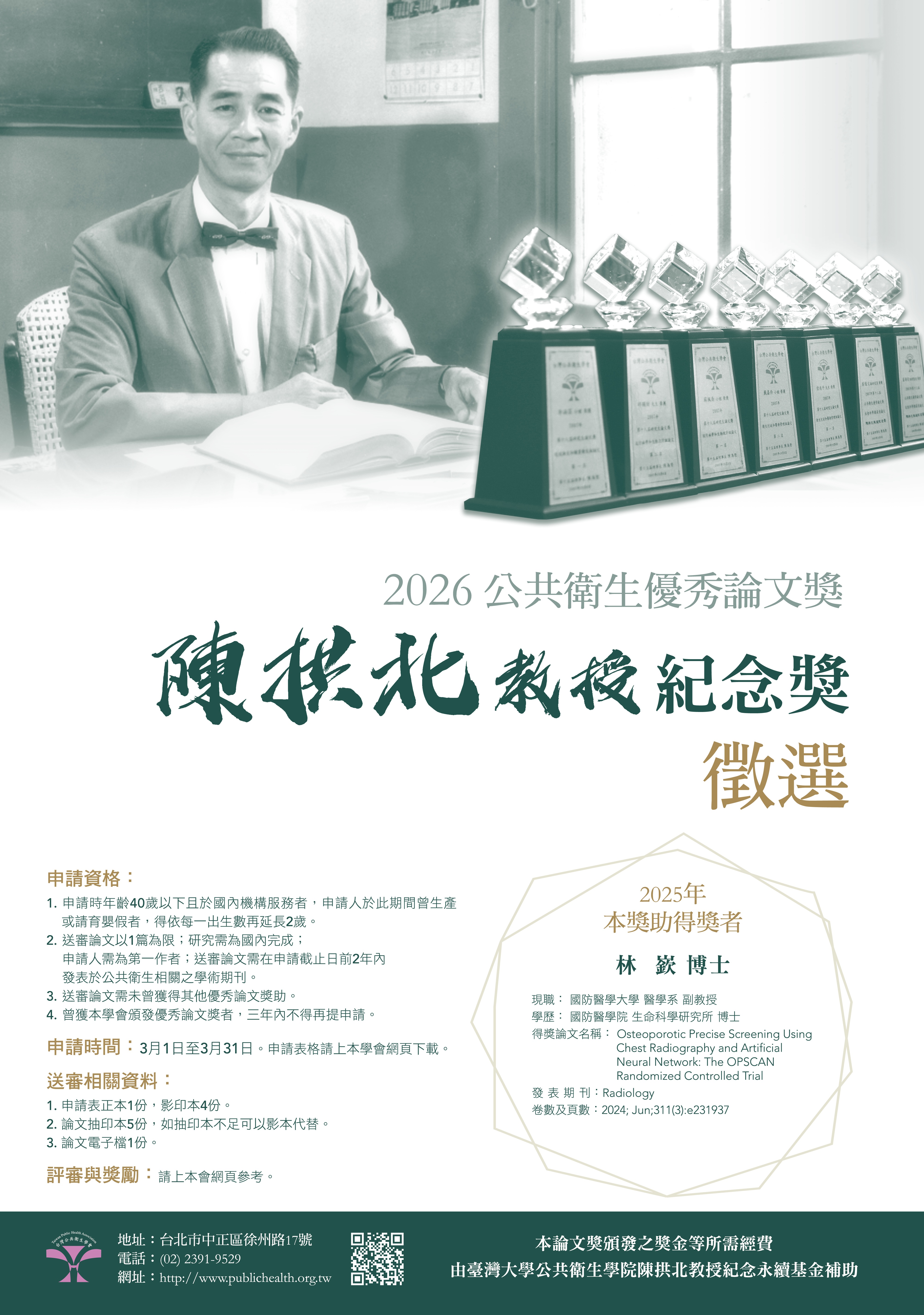 第32屆「公共衛生優秀論文獎──陳拱北教授紀念獎」徵選開跑!